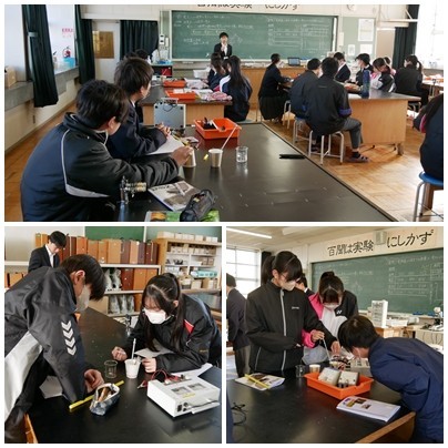 2年生 理科「電流による発熱と電力との関係を調べよう」の授業の様子です。