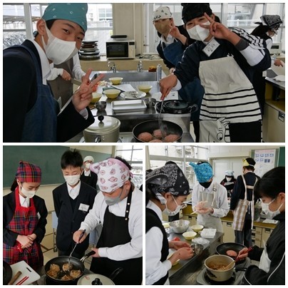 1年生 家庭科「ハンバーグとコンソメスープの調理実習」の授業の様子です。