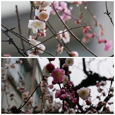 北部中学校校庭の卒業記念樹の梅が咲き始めました。