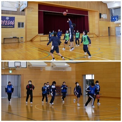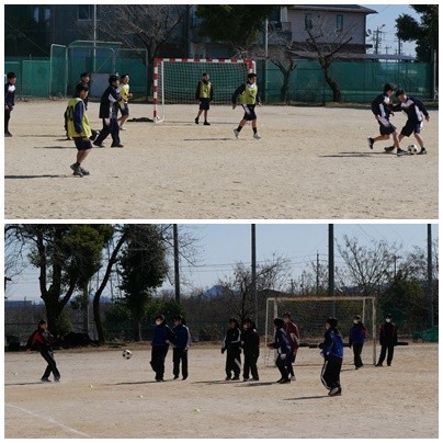 1年生 体育「サッカー」「バスケ」の様子です。