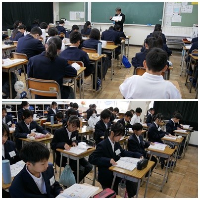 1年生 家庭科の授業の様子です。教科書を見ながら授業の導入です。