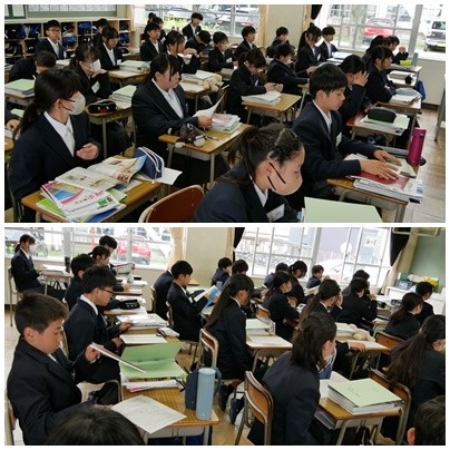1年生 社会の授業の様子です。教材配布とガイダンスを行っています。