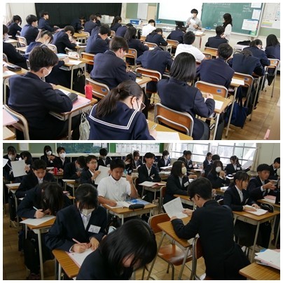 3年生 英語「理子が先週何をしたか読み取ろう!」の授業の様子です。