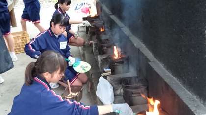 野外炊事がはじまりました。