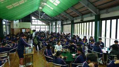 「朝から牛丼は重いかな」と思っていましたが、「あっという間の完食の生徒」が多く見られました。