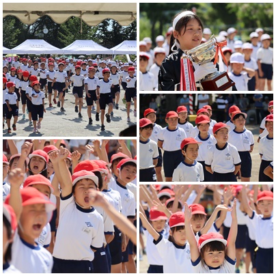 今日は、草井小学校で運動会が行われています。朝から晴れて暑い日となりました。開会式から、元気いっぱいの小学生に会うことができました。徒競走やリレー、ソーランの踊りなど、どの競技もきびきびと動きすばらしいと思いました。