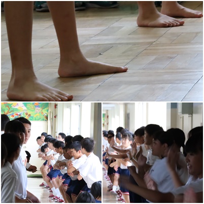今は、「基本の動き」をみんなで学んでいます。この後さらに複雑な「アレンジゾーン」が登場します。9月の体育大会までに、しっかりマスターしましょう。