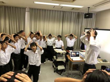 アメリカのキャンプでよく歌われる「Banana song」をダンスしながら全員で歌いました。