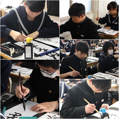 2年生は、国語で書写の授業を行っていました。「功を奏する」という文字を書いていました。集中して取り組んでいました。
