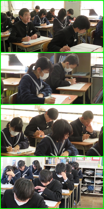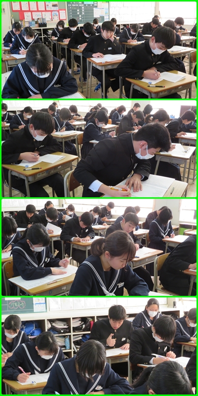 本日、2教科目のテストです。