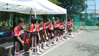 布袋中学校との交流試合では、青空の中全員笑顔で終えることができました。