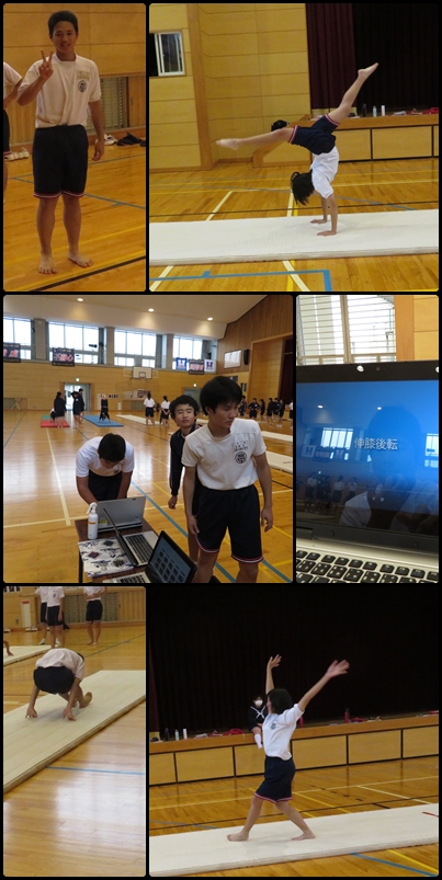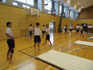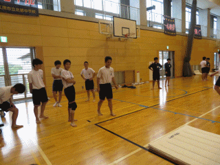 模範演技を確認して、自分の動きを確認しながら練習しています。