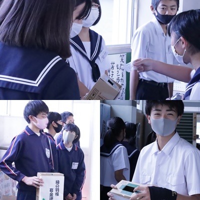 昨日から今日にかけて、環境委員が「緑の羽募金」を行ってくれました。たくさんの北中生が協力し、2日間で16139円集めることができました。ありがとうございました。