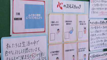 保健室前の心のストレスチェックが掲示されています。これは、スクールサポート活動の横山先生が作ってくださいました。ありがとうございました。ぜひ自分の心のストレスチェックを行ってみてくださいね。