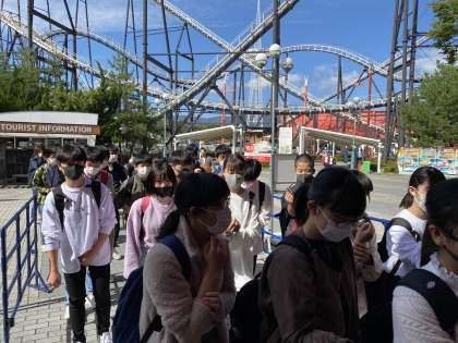 富士急に到着しました。早速それぞれの班でアトラクションを楽しんで来ます。