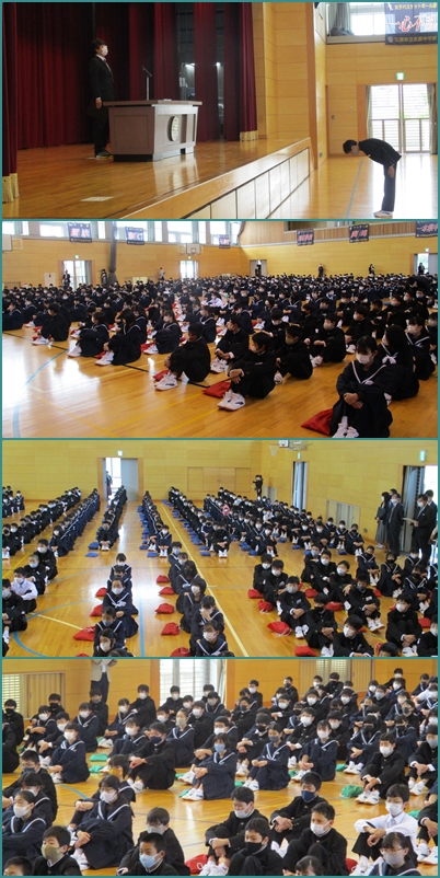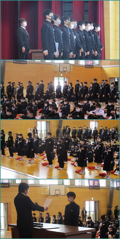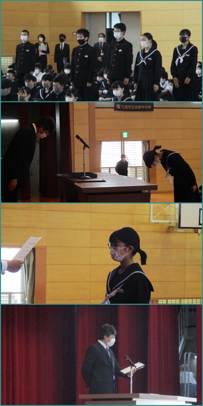 朝礼の初めに、軟式野球江南大会で優勝した野球部の皆さんの表彰伝達を行いまいました。