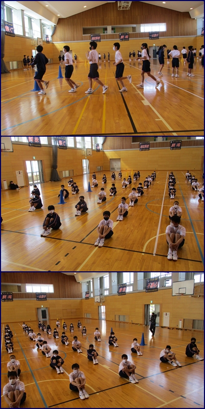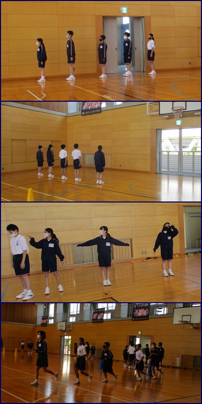 次回の集団行動発表会に向けて、生活班で練習をしています。