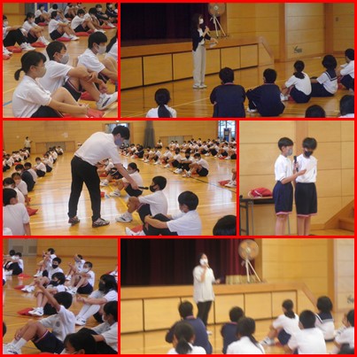 1学期のまとめ集会を行い、夏休みに向けて、先生から話を聞きました。