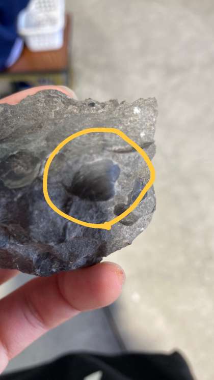 写真の石の中には貝の化石があります。