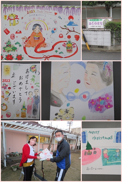 「コミュニティー・スクール」の一環で美術部の皆さんが『デイサービス ふじのはな』の皆さんへクリスマスとお正月のポスターを描いてくれました。