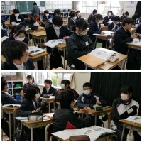 本日の6限、1年4組では数学の授業を他校から指導員の先生を招き、見ていただきました。生徒は関数の1時間目ということで「ともなって変わる数量について」様々な数量変化の様子を調べることができました。授業後は応接室で意見交換が行われ、指導員の先生から北中の学びについて有意義な示唆をいただきました。