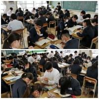 明日に学年末試験を控え、欠席も非常に少ない3年生です。6限は面接の練習を行う生徒もいました。学年主任や進路担当の先生を相手に練習をしますが、それでも緊張します。たかが面接と思っていると大間違い。少ない時間でも、何人も面接してみると大きな違いがわかるものです。最低でも、「はきはきと明るく」、「です。ます。」の丁寧語は必須でしょう。