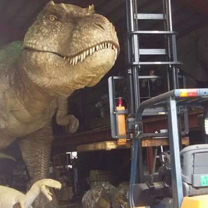 恐竜の模型を作っている工場の横を通りました。大迫力です。