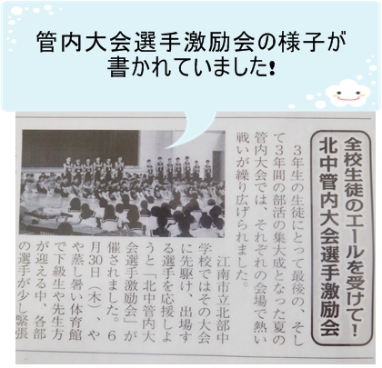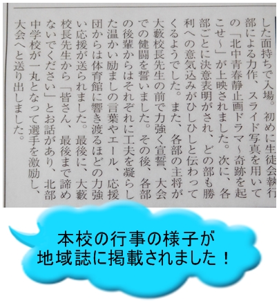 本校の管内大会選手激励会の様子が地域誌「WITH タイムズ」に掲載されているのを見つけました。