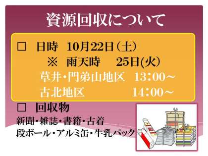上記のように、資源回収を行います。ご協力よろしくお願いします。