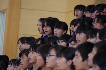 本日5時間目、合唱コンクールに向け、2年生の学年合唱曲「時の旅人」の練習を体育館で行いました。とても歌の上手い学年です。初の練習でしたが、息もぴったり。頼れる伴奏者や指揮者、各クラスのパートリーダーもいます。さらに歌声に磨きをかけ、合唱を聞く人の目の前に歌詞の映像が浮かぶくらいまで極めていきたいです。