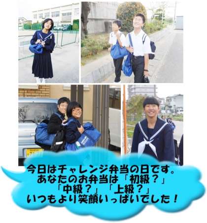 登校してくる生徒の皆さんに、「今日のお弁当は上級?中級?初級?」と尋ねると笑顔で言葉が戻ってきます。