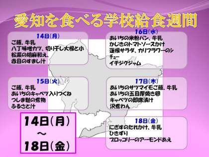 愛知をたべる学校給食週間【11/14(月)〜18(金)】