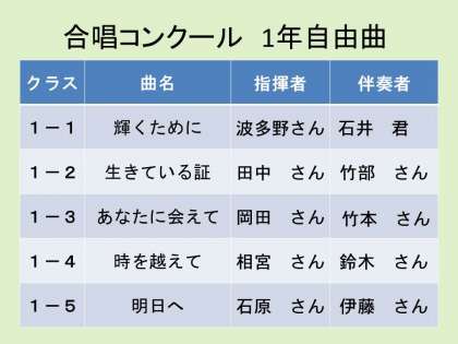 合唱コンクール  1年自由曲について
