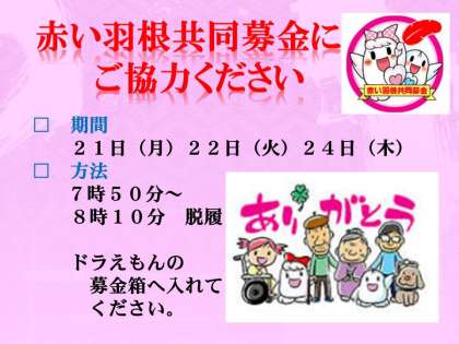 本校では、生徒会を中心に赤い羽根共同募金活動を行います。