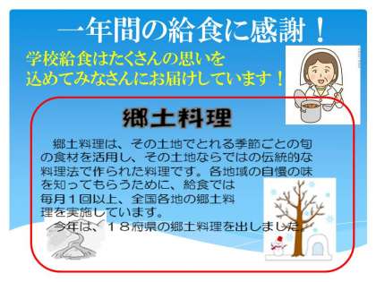 1年間、毎日、おいしい給食をつくっていただき、大変ありがとうございます。