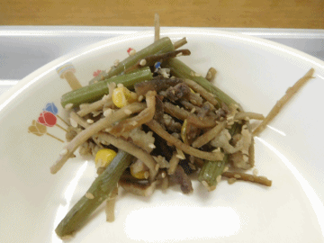 本日の給食の主役は、「ふきと豚肉のきんぴら」です。【4月21日(金)】
