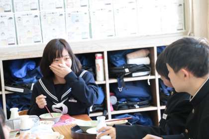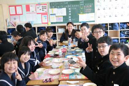 班の仲間と、クラスの仲間と一緒に食べる給食は、美味しく感じますね。