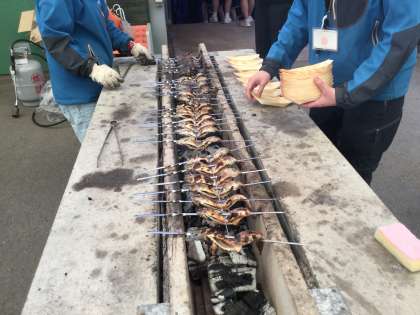 みんなのさばいたアマゴを園の方に焼いていただいています。香ばしい香りがしています。