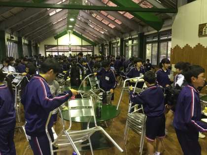 あいさつをして手分けして片付けます。