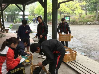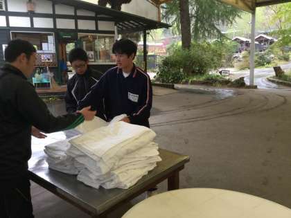 シーツや炊飯の道具を返却します。点検は合格できるかな?