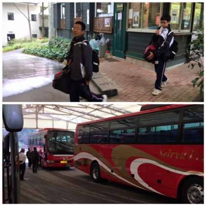 自然園にバスが迎えに来てくれました