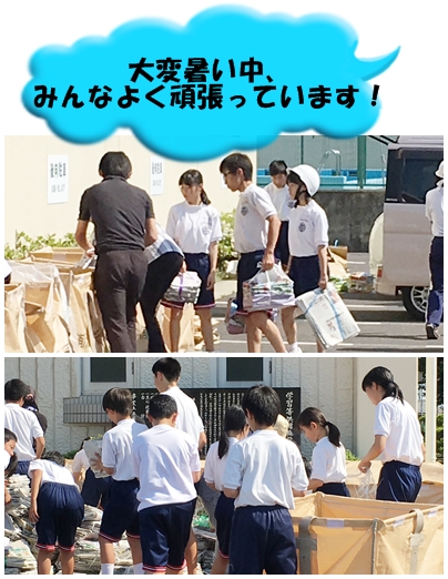 最高気温が30度になろうとする暑さの中で、生徒の皆さん、保護者の皆さん、職員で無事、資源回収を終えることができました。