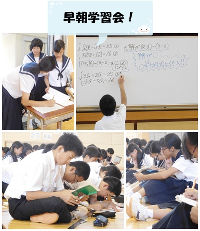 おやっ!7時30分です。体育館から先生の声がきこえます。