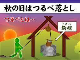 釣瓶とは縄または竿の先につけて、井戸水をくみあげるために使う桶のことです。その釣瓶を井戸の中に落とすように秋の日は急に落ちていきます。