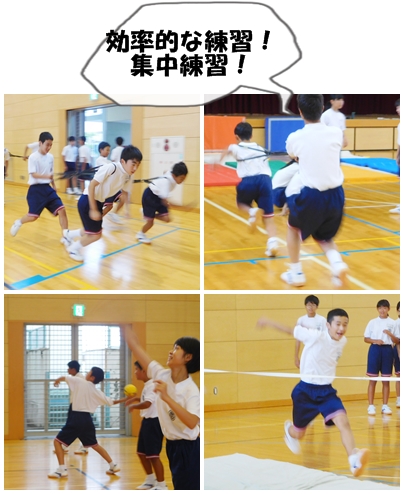一斉に使うと、やや狭い感じはしますが、どの種目にとってもはっきりと練習方法が示され、ケガをしないように効率的に進められています。