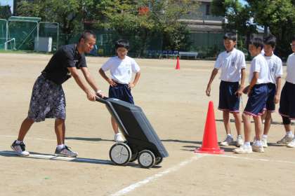 体育大会に向けて、新型ラインカーを導入しました。