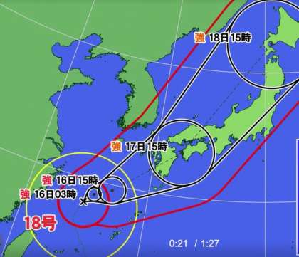 おはようございます!【9月16日(土)】台風18号が接近しています。