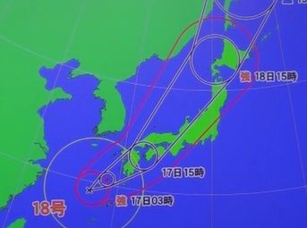おはようございます!【9月17日(日)】台風18号は今夜から明日未明にかけて、東海地方に最接近します。