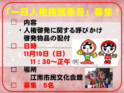 一日人権擁護委員を募集しています。 【江南市人権擁護委員会】