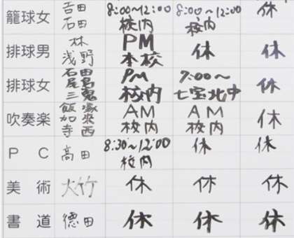 三連休の部活動の予定 【9/16(土)〜9/18(月)】